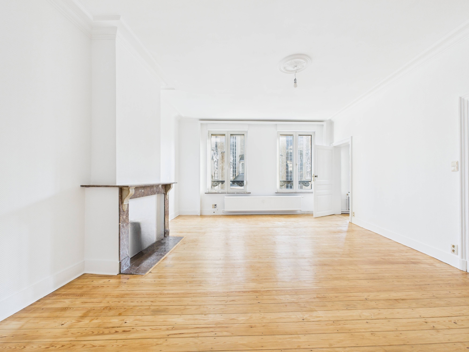 L'appartement se compose d'un spacieux hall d'entrée, d'un agréable living avec bibliothèque encastrée, d'une cuisine équipée, d'une nouvelle douche, de deux WC. Trois chambres dont une à l'arrière et deux à l'avant. Double vitrage, parquet au sol, multitude de rangements intégrés, ascenseur donnant accès direct à l'appartement. Le quartier offre une multitude de commerces haut de gamme, d'antiquaires, de bijoutiers, de restaurants, de chocolatiers. Un accès rapide aux transports en commun, borne Villo et Cambio à proximité. PEB D, 209 kWhEP/m²/an, 41 kgCO₂/m²/an
