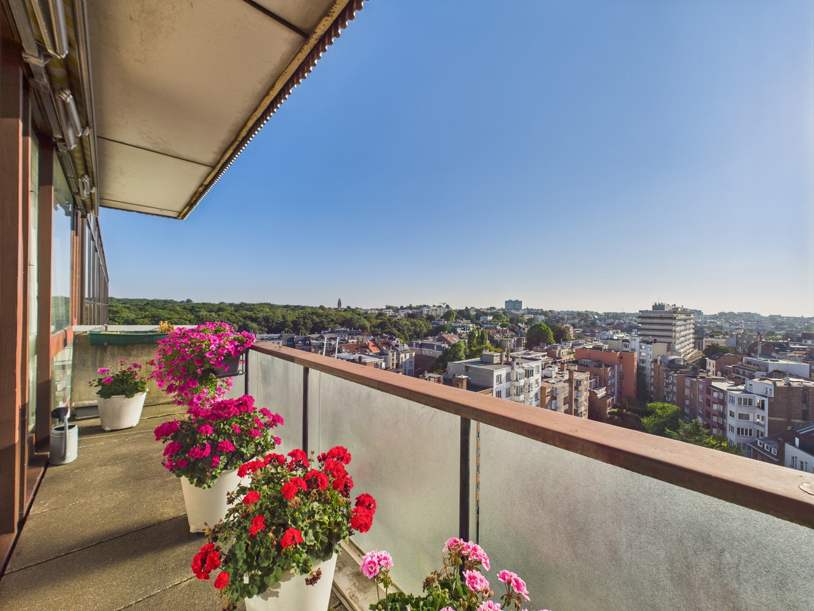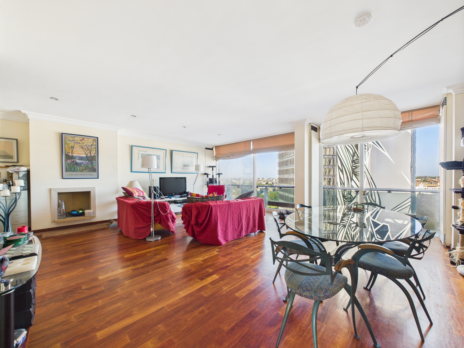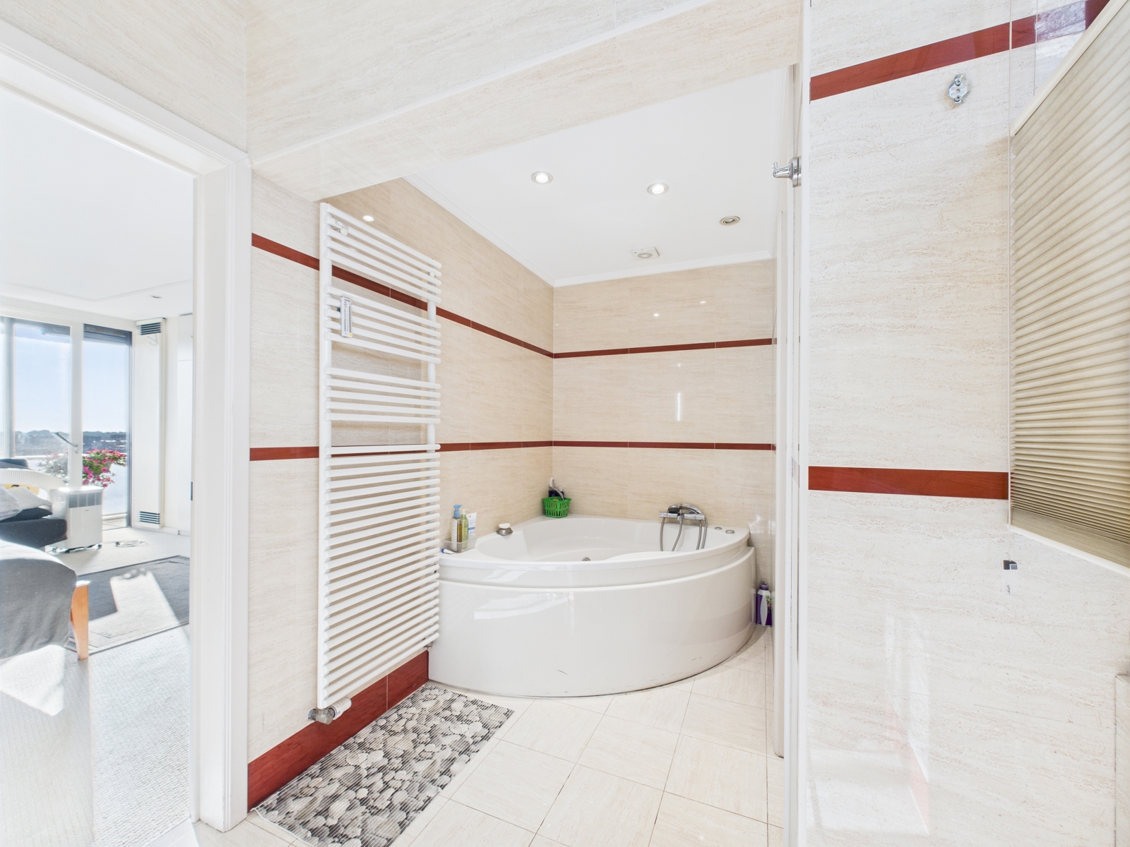 L'appartement se compose d'un vaste hall allant vers les espaces de vie et de nuit, un séjour,/salle à manger avec accès au balcon filant avec vue panoramique 180° sur Louise , une cuisine séparée avec balcon, un wc indépendant, une salle de douche et deux chambres dont une avec salle de bains et wc attenants. Les deux chambres donnent accès à la terrasse arrière offrant une vue très dégagée sur Bruxelles Ouest. L'appartement dispose d'un cave et d'un emplacement de parking sur option : 40.000€. PEB D, 205 kWh/m²/an, 41 kgCO²/m²/an