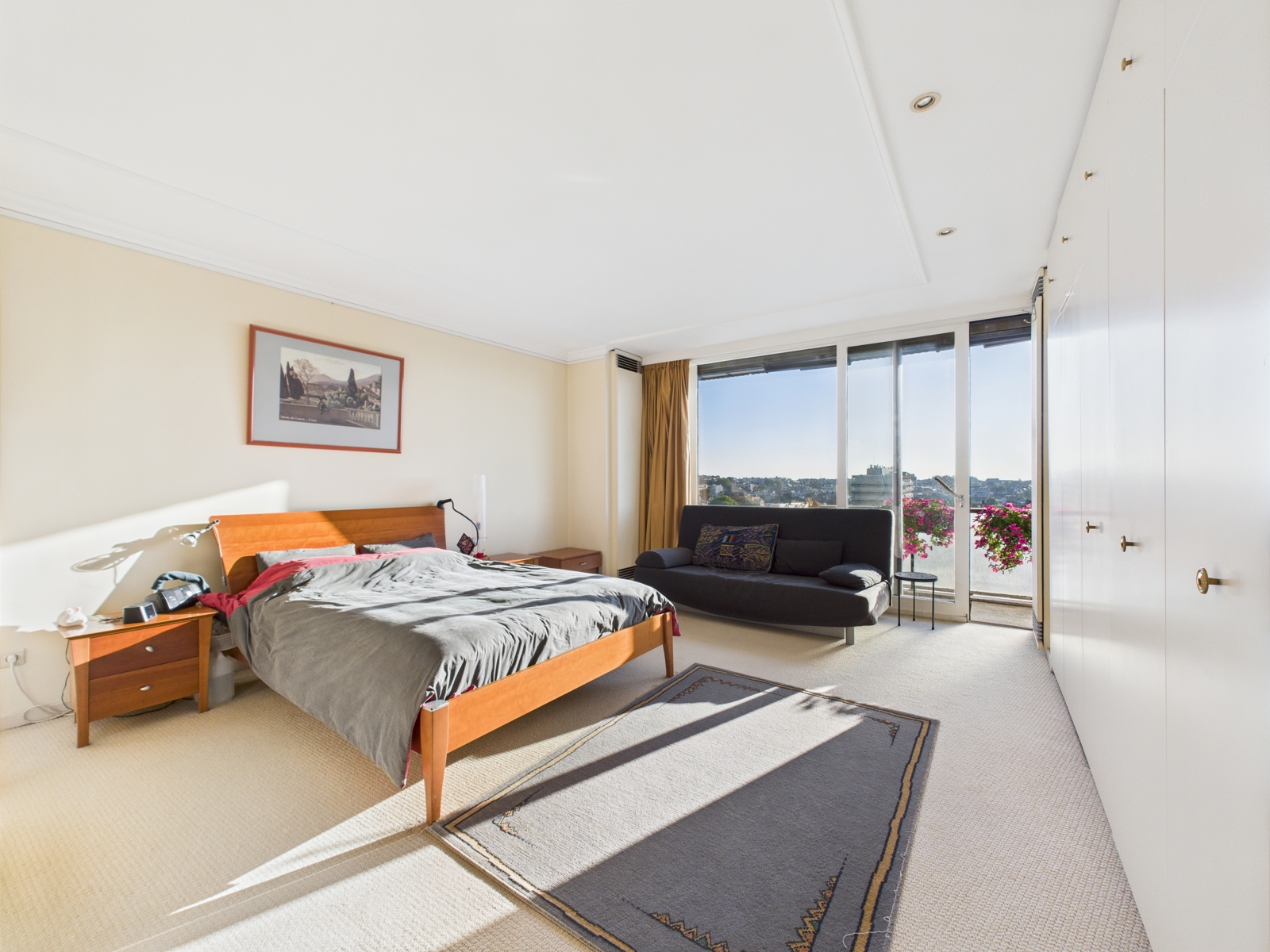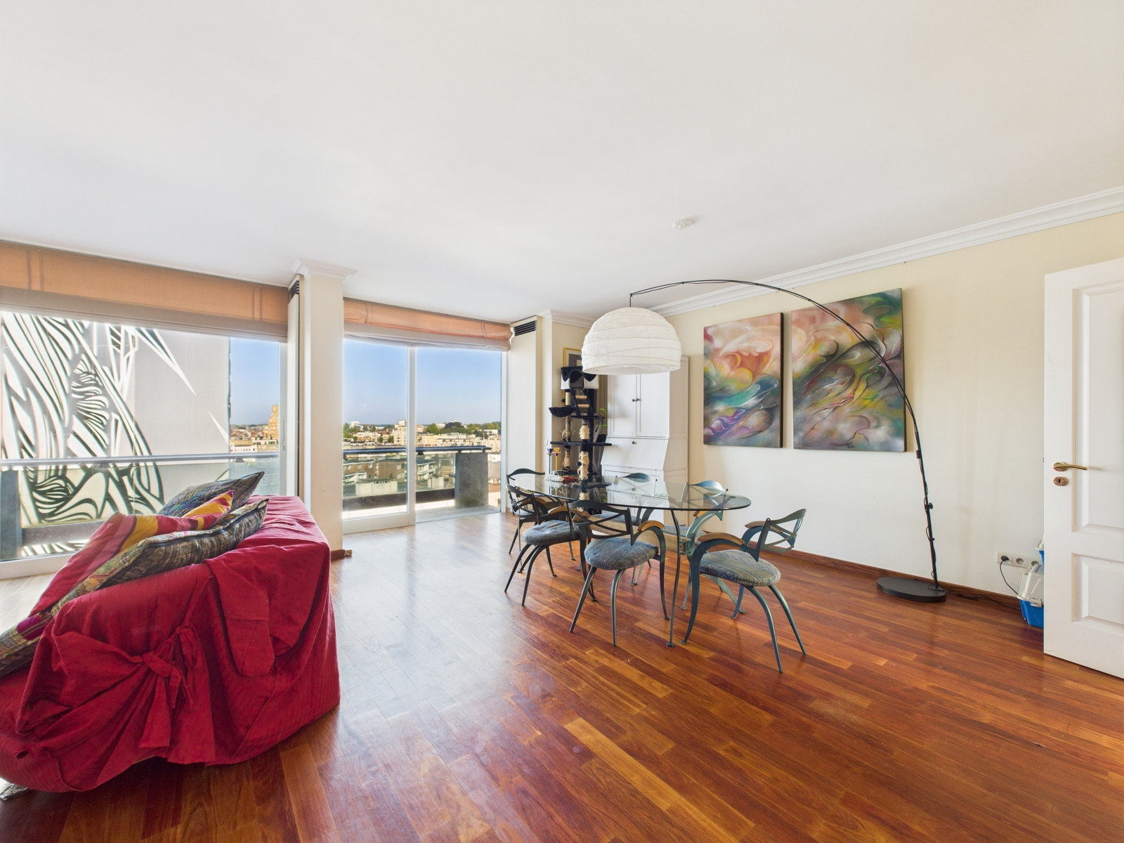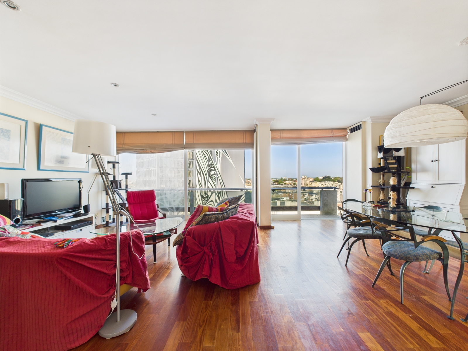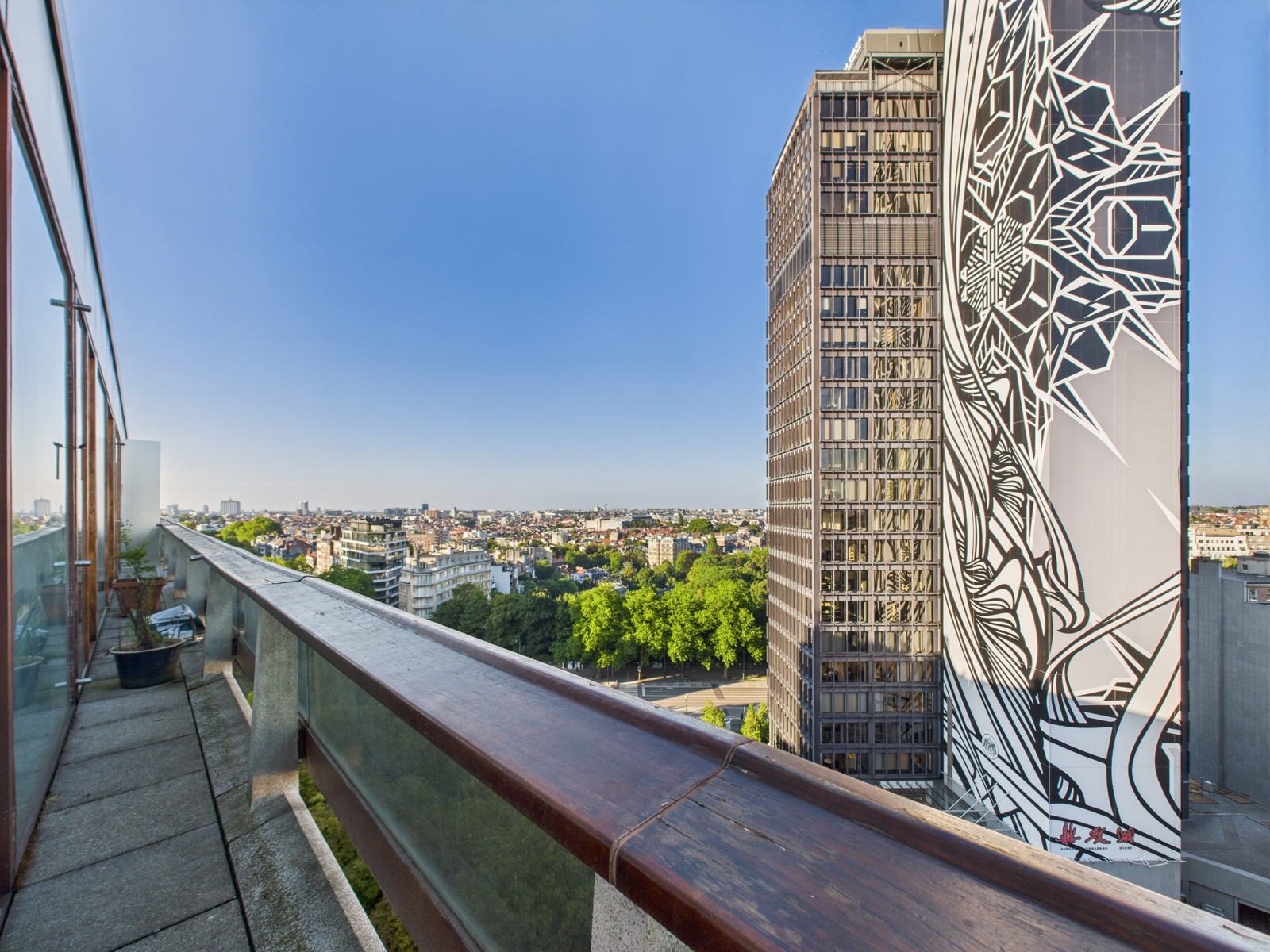 L'appartement se compose d'un vaste hall allant vers les espaces de vie et de nuit, un séjour,/salle à manger avec accès au balcon filant avec vue panoramique 180° sur Louise , une cuisine séparée avec balcon, un wc indépendant, une salle de douche et deux chambres dont une avec salle de bains et wc attenants. Les deux chambres donnent accès à la terrasse arrière offrant une vue très dégagée sur Bruxelles Ouest. L'appartement dispose d'un cave et d'un emplacement de parking sur option : 40.000€. PEB D, 205 kWh/m²/an, 41 kgCO²/m²/an
