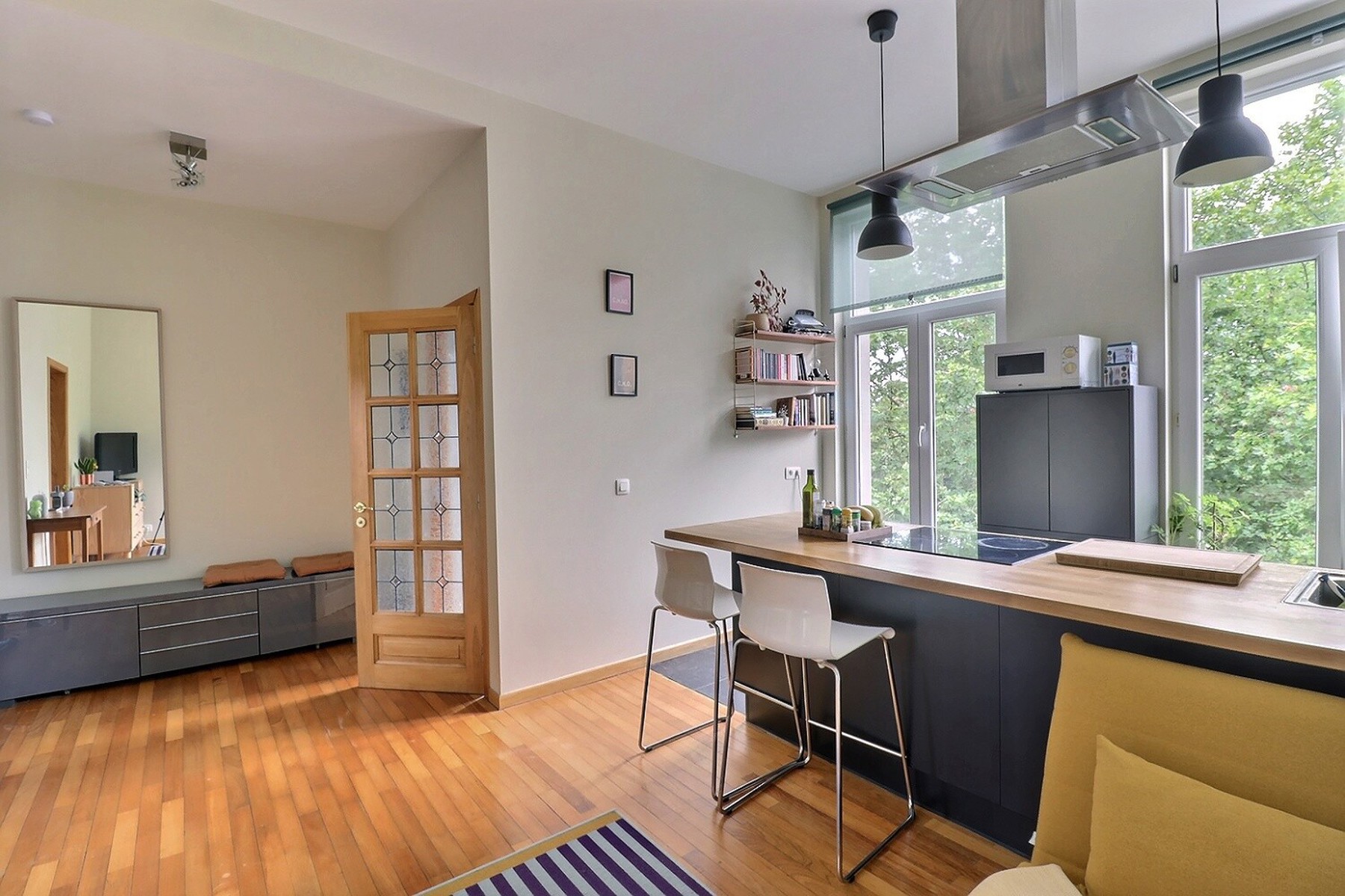 Saint-Gilles - Porte de Hal : charmant appartement 1 chambre meublé! Situé au deuxième étage de l'immeuble, il se compose d'un beau séjour/salle à manger avec cuisine ouverte en îlot, d'une grande chambre et d'une salle de douche avec wc. Doubles vitrages, chaudière au gaz, parquet au sol. Les charges communes sont comprises dans le loyer, les charges privatives (chauffage, électricité et eau) seront à prendre à part. Situé à deux pas de la porte de Hal, sa localisation offre un accès facile aux transports en commun, restaurants et commerces divers.