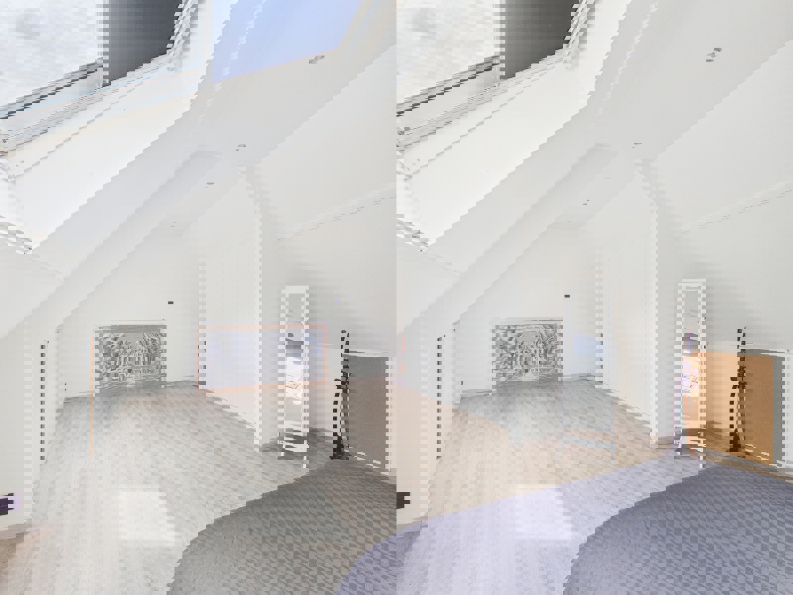 À l'étage, trois chambres. La suite parentale dispose d'un dressing de 9 m² et un escalier mène à la chambre de 27 m² avec placards intégrés. Les autres chambres mesurent respectivement 15 m² et 16 m². La salle de bain est équipée d'une douche supplémentaire avec de la lumière naturelle. Des toilettes séparées dans le couloir.