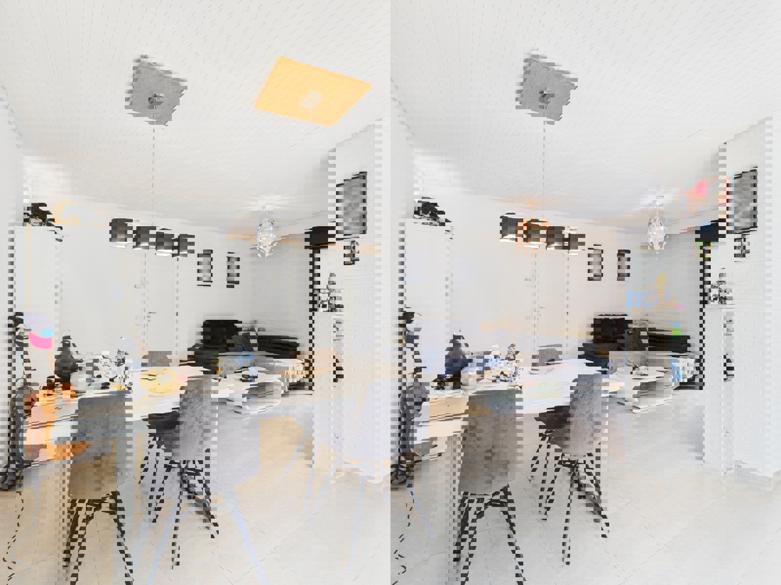 Dès le hall d'entrée avec vestiaire et toilettes, vous ressentirez immédiatement l'atmosphère chaleureuse et ouverte de cette maison. Un spacieux et lumineux séjour de 65 m² avec cheminée et cuisine. Une arrière-cuisine attenante offre un espace de rangement supplémentaire. Le séjour donne directement sur la véranda de 13 m² ou sur le jardin. Un garage double complète le rez-de-chaussée.