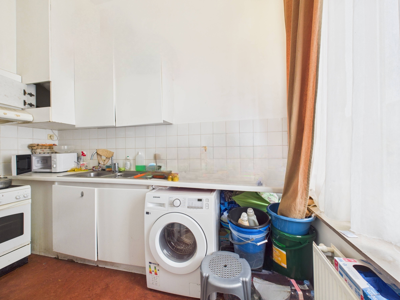 L'appartement se compose d'un séjour donnant accès à la terrasse, une chambre, une salle de douche avec wc, une cuisine et un balcon. L'appartement est actuellement loué sous bail long terme. PEB G, 349 kWh/m²/an, 67 kgCO²/m²/an, n° 20251120-0000734760-01-0