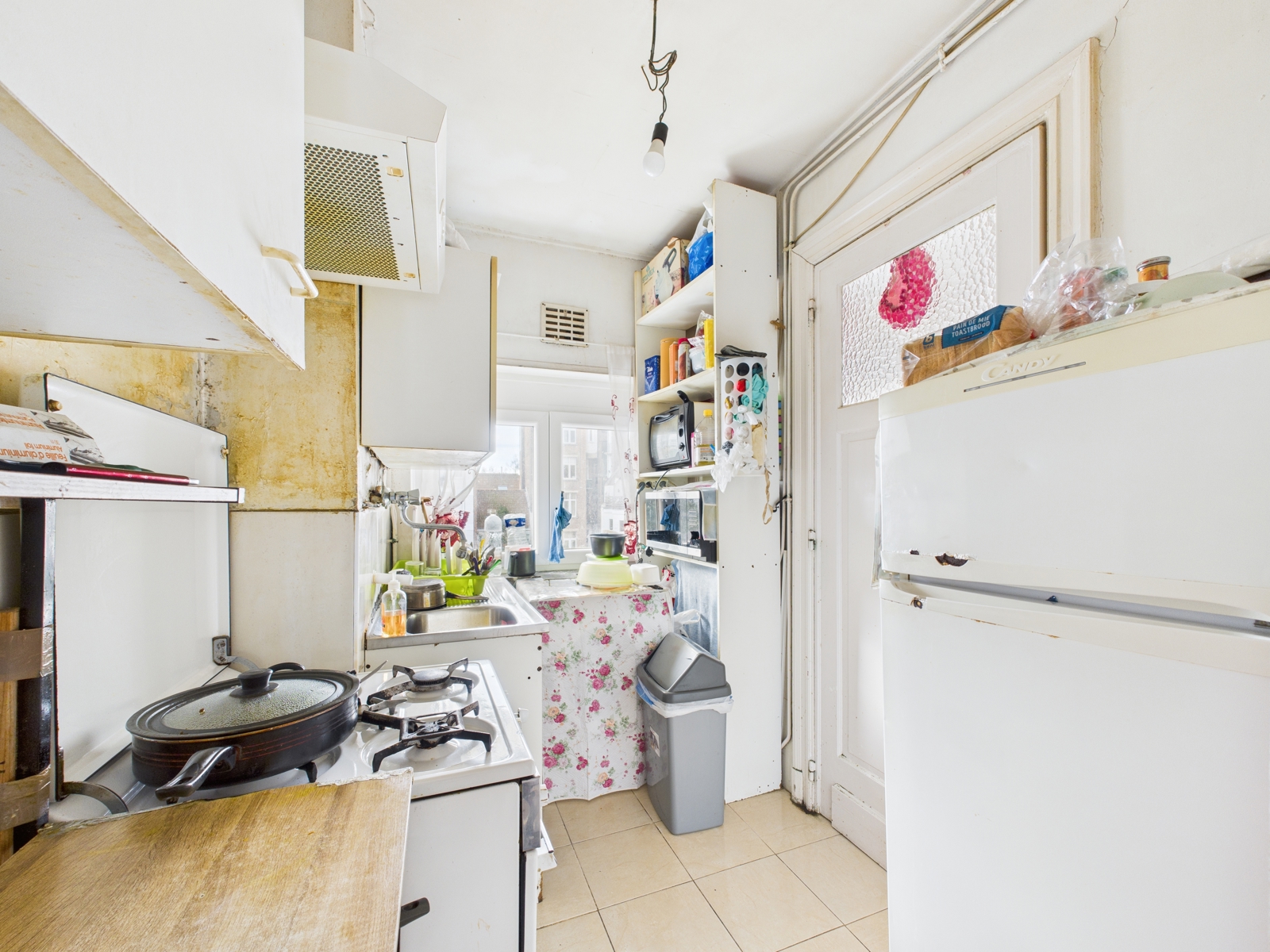 - Au 1er étage, un appartement composé d'un spacieux séjour attenant à une chambre, une cuisine avec balcon et une salle de douche avec wc. PEB G, 397 kWh/m²/an, 103 kgCO²