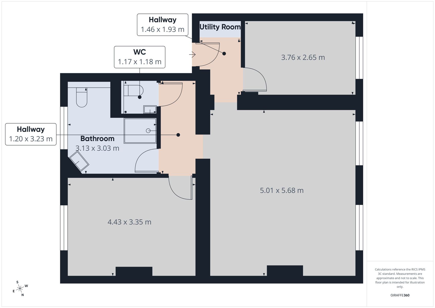 L’appartement, refait à neuf, se compose d'un hall d'entrée, une spacieuse pièce de vie, une cuisine full équipée, une chambre spacieuse, une autre de taille moyenne et une salle de douche avec WC. Celle-ci comprend également un espace prévu pour accueillir une machine à laver. Un espace pouvant servir de bureau se trouve à l’entre-étage (niveau inférieur).
