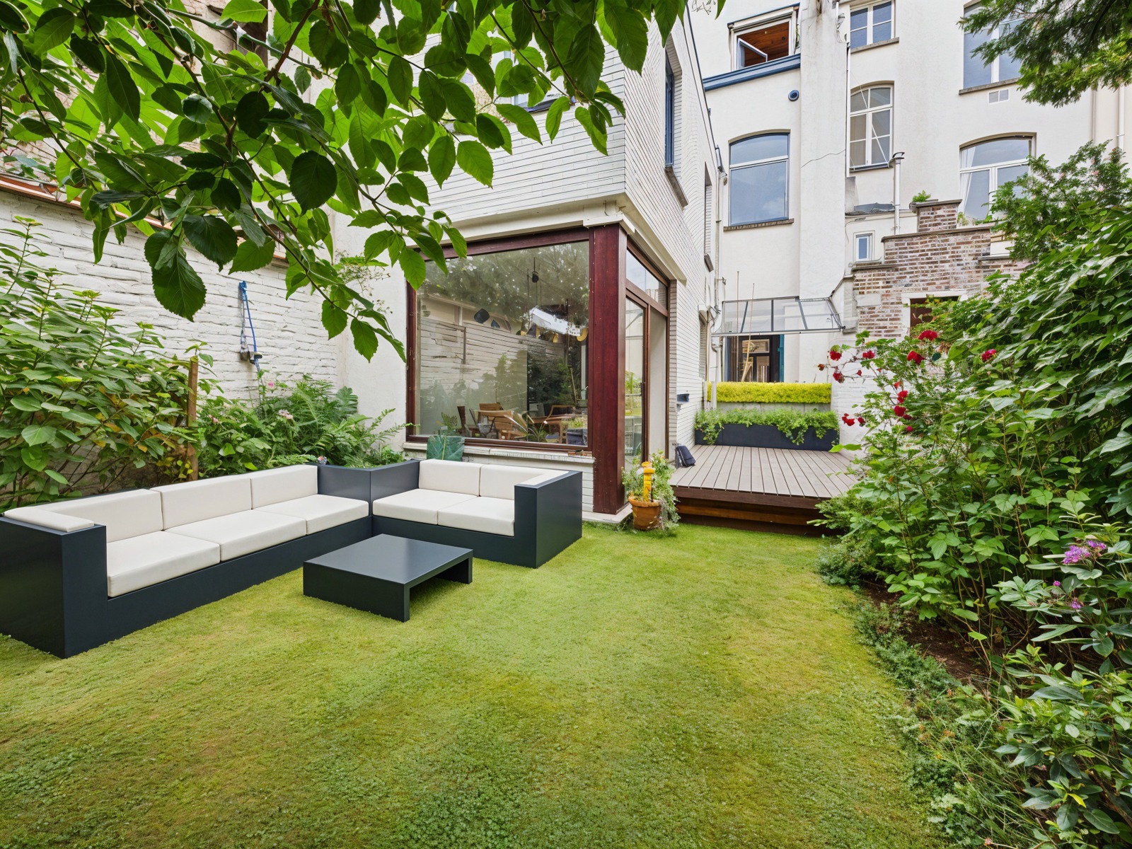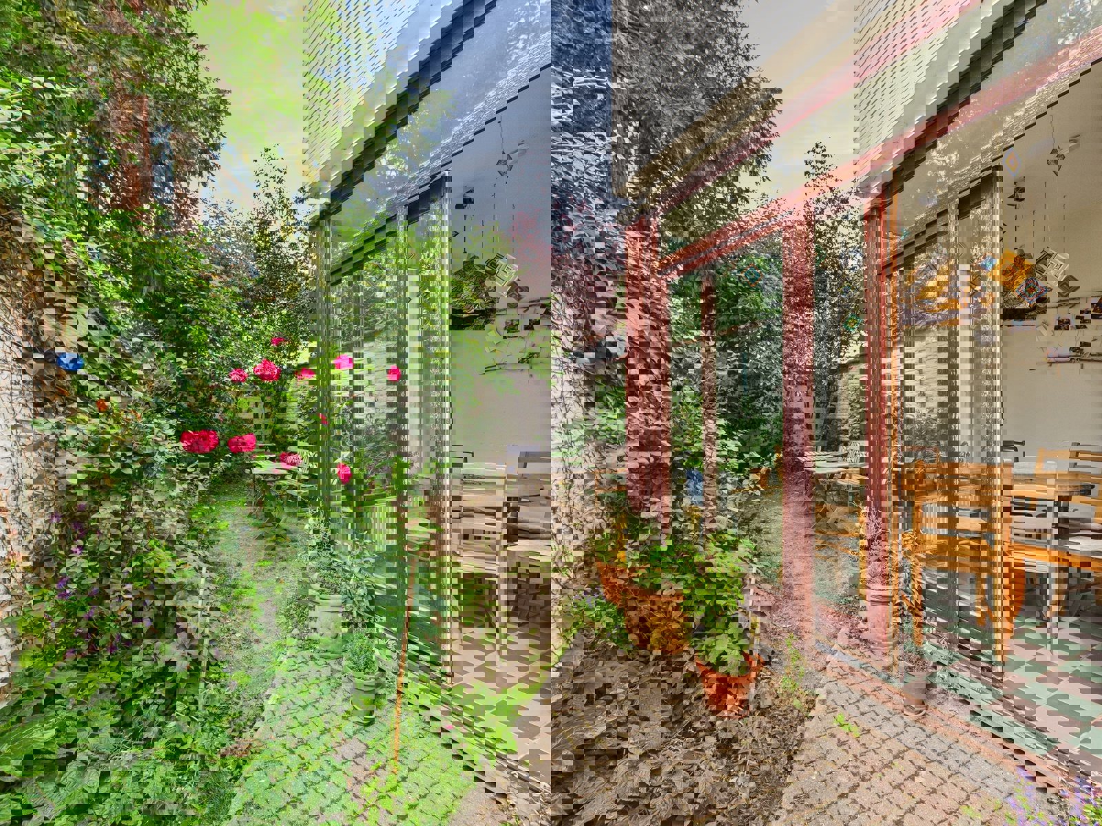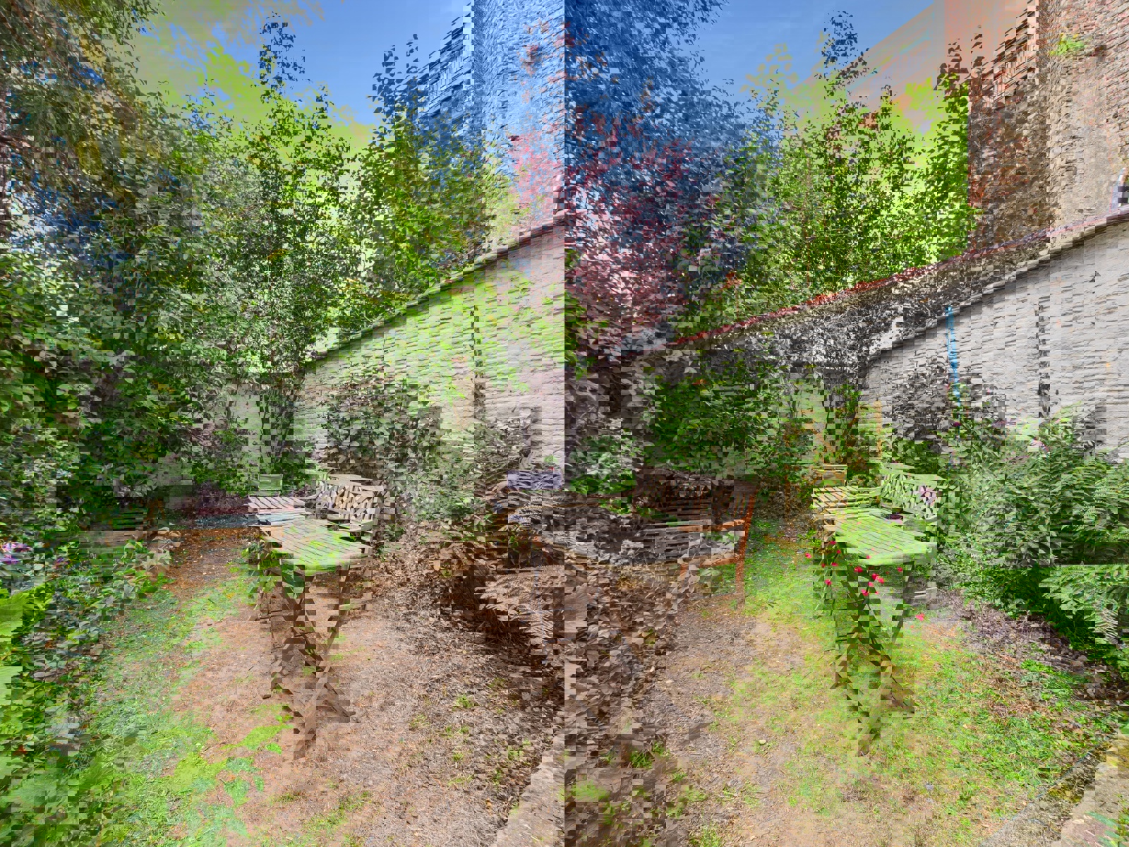 Répartie sur trois étages, la maison propose au rez-de-chaussée deux pièces en enfilade composant le séjour, suivies d’une grande cuisine et d’une salle à manger installée dans une extension à l’arrière. Cet espace donne accès à un agréable jardin orienté nord, parfait pour profiter de moments de calme en extérieur.