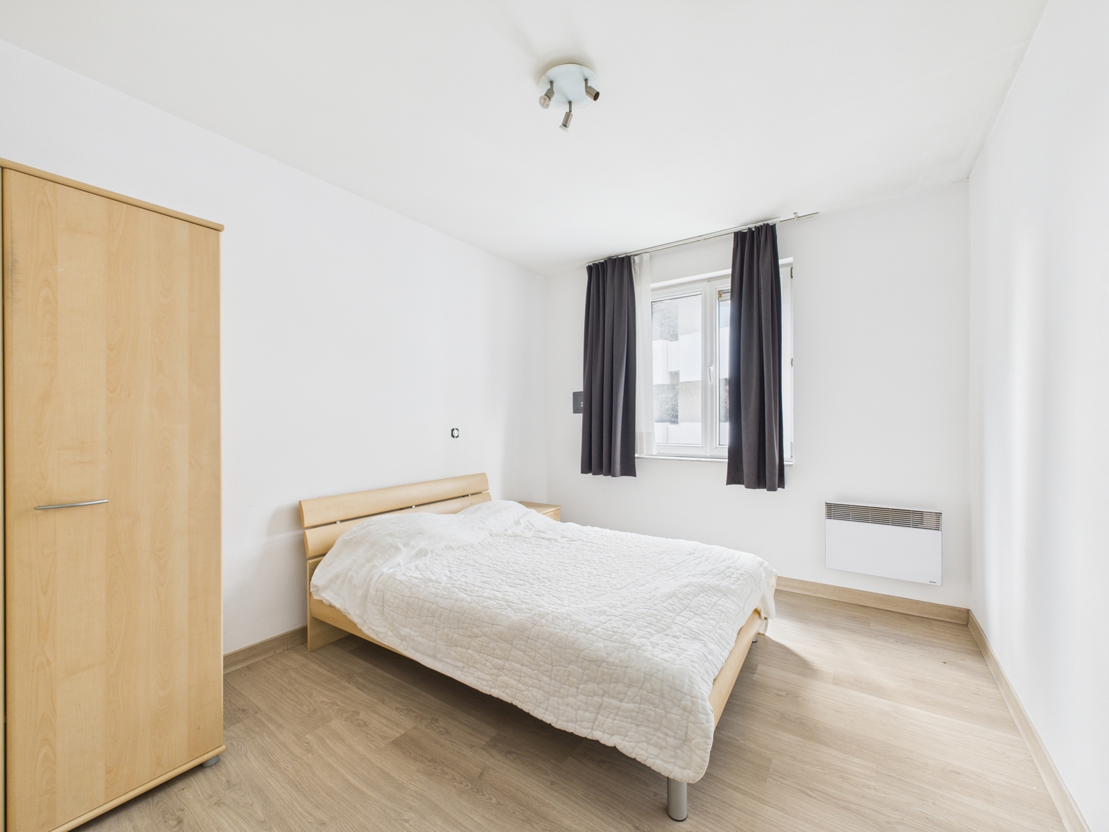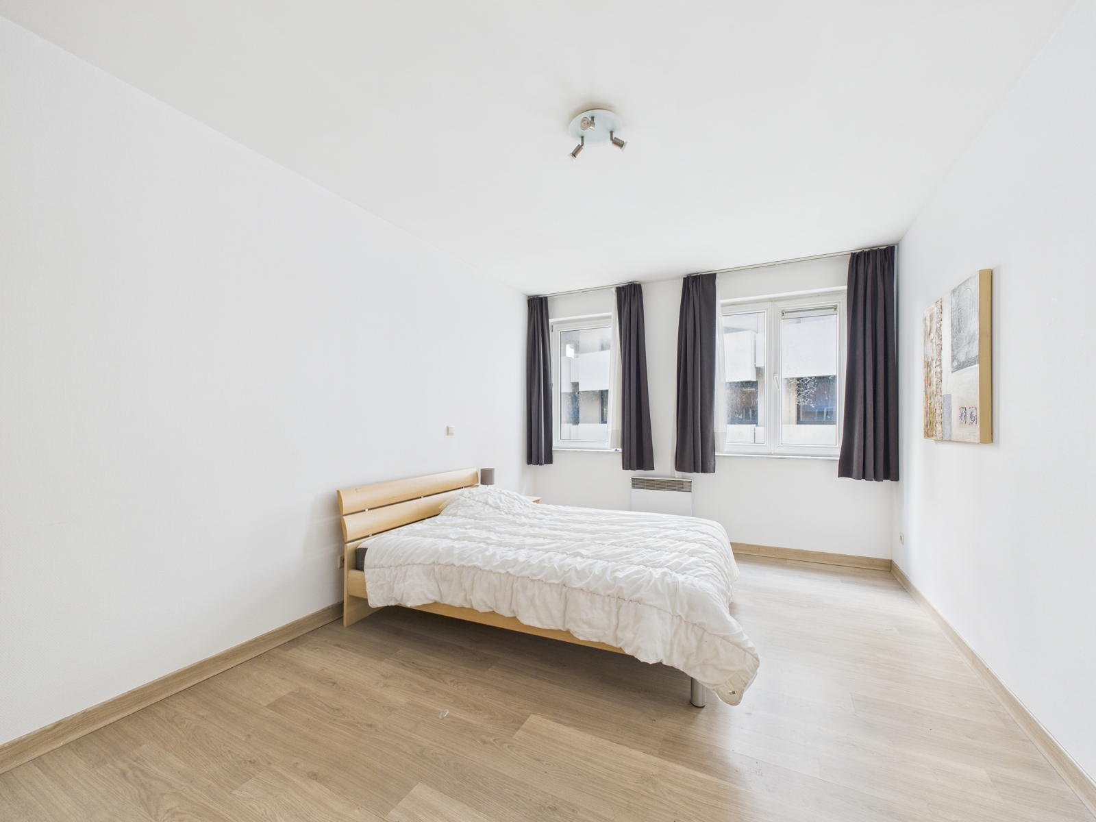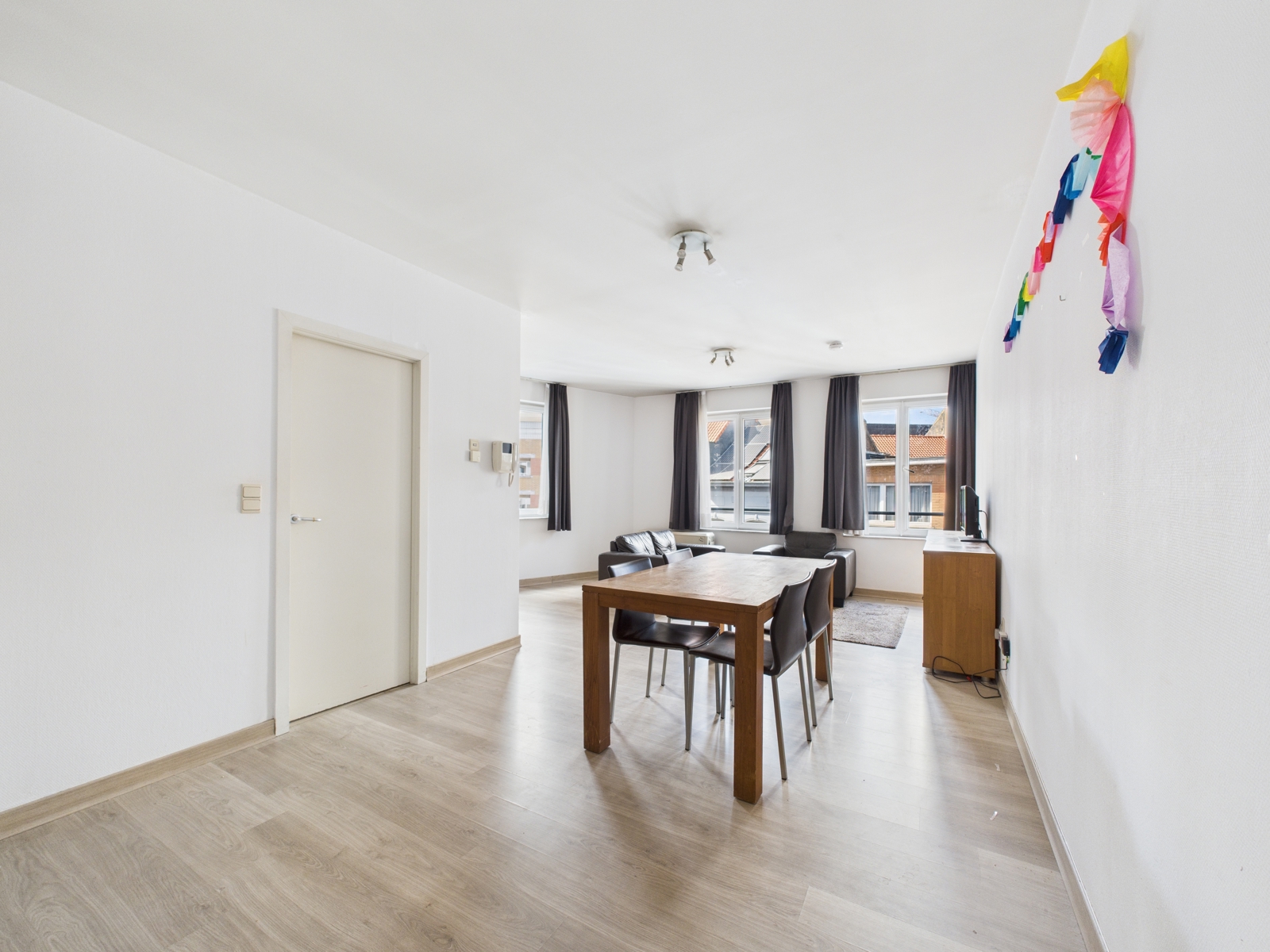 The property consists of a dining room, a living room, a separate kitchen, a cloakroom, a separate toilet, a large bedroom, a medium-sized bedroom, a bathroom, and an optional garage for €100/month. Shared laundry facilities in the basement. New kitchen, double glazing, wooden flooring, secure building.