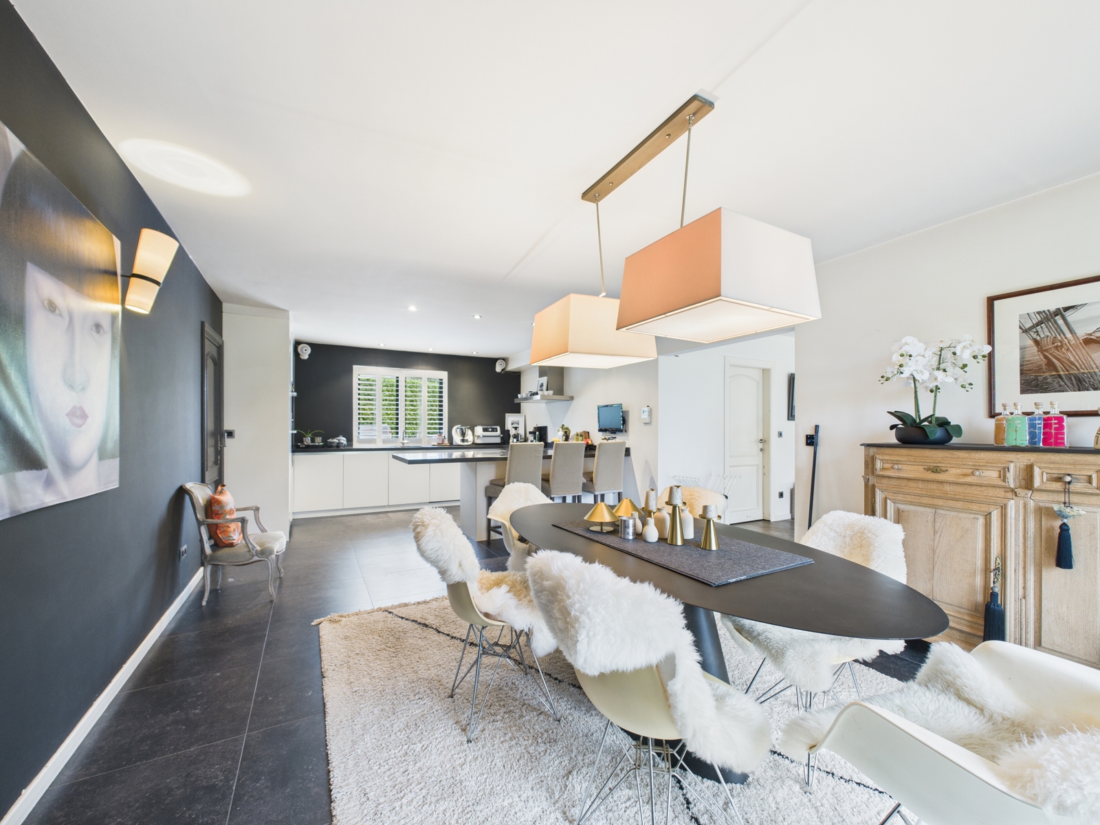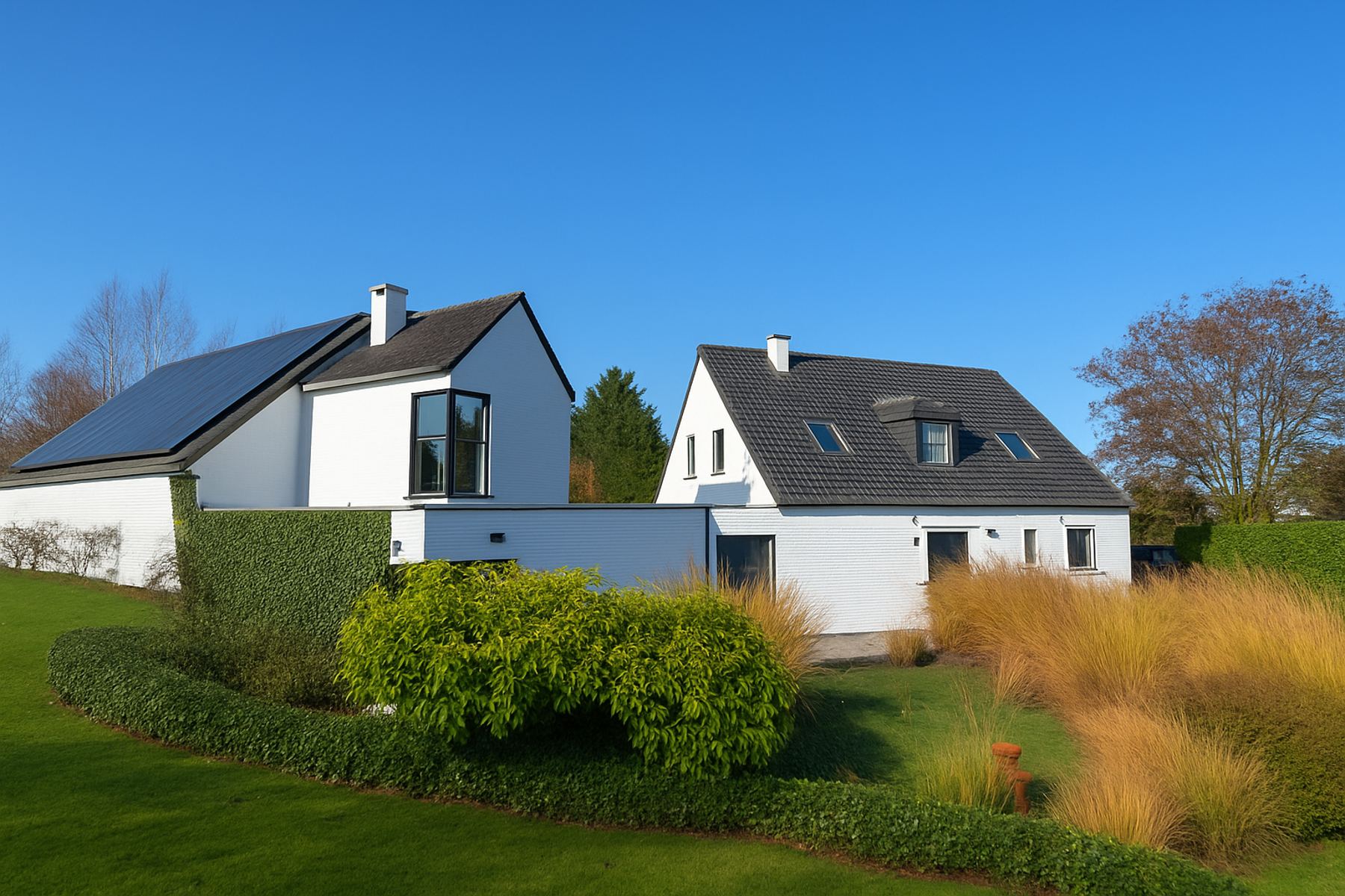 Comfort/Technical Features: PEB B; 99kwh/(m².an); CO² 25 kg/(m².an); code unique20251212015032. – reversible heat pump heating/cooling via underfloor heating/cooling, air conditioning, double glazing (2024), 36 solar panels (2023), home automation, pre-wiring for a sound system, alarm system, garage + 5 outdoor parking spaces.