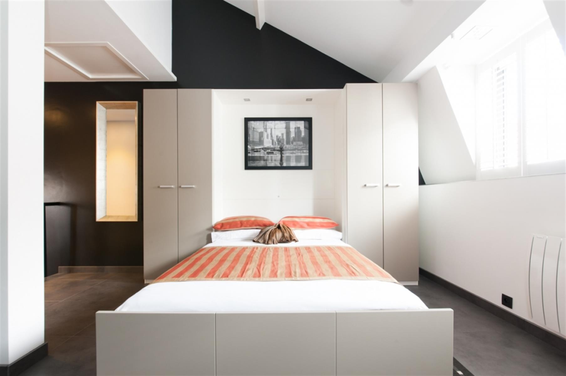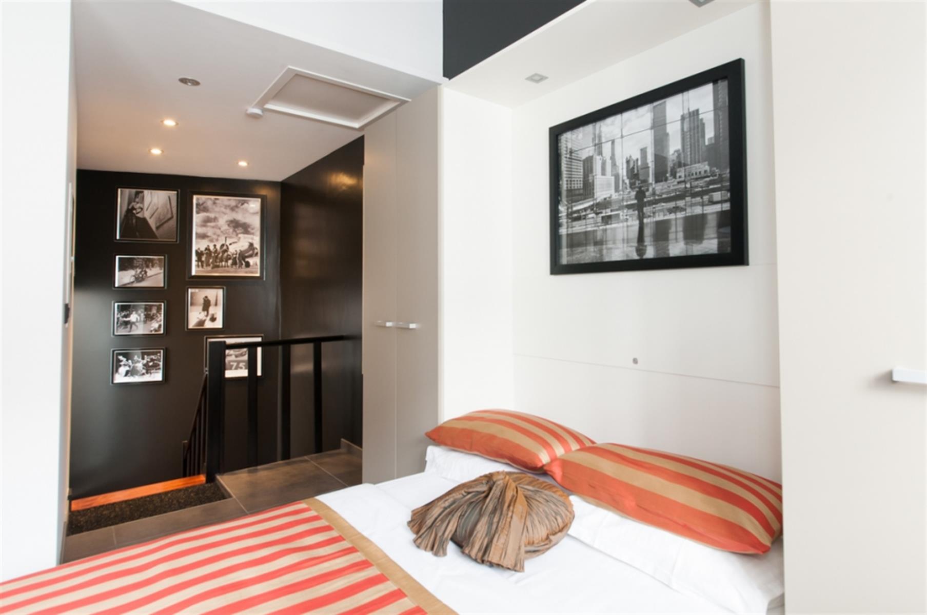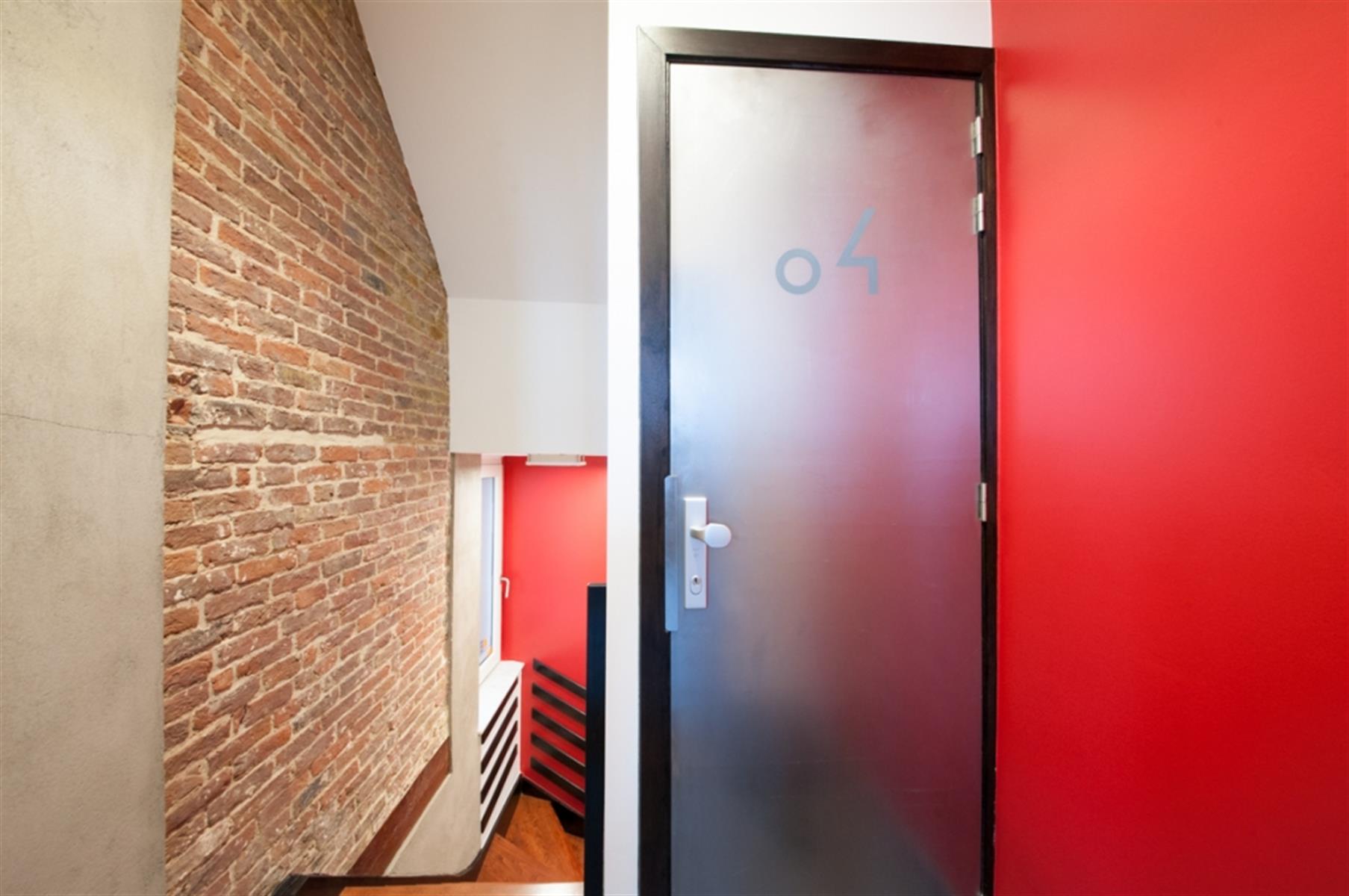 Sint-Gorikszaal - Gemeubileerde studio - In het hart van Brussel, tussen de wijken Beurs, Sint-Gorikshallen en Dansaert, studio met een resoluut moderne stijl. De studio's zijn uitgerust met kantoormeubilair ontworpen door een ontwerper van de Zavel. Een kast met een opklapbed en een kluisje. Een kitchenette uitgerust met een bartafel (afzuigkap, retro SMEG-koelkast, keramische kookplaat, magnetron, keukenbenodigdheden). Een doucheruimte met wastafel en toilet. Het gebouw is volledig beveiligd, met toegangscontrole met code en gepantserde deuren.