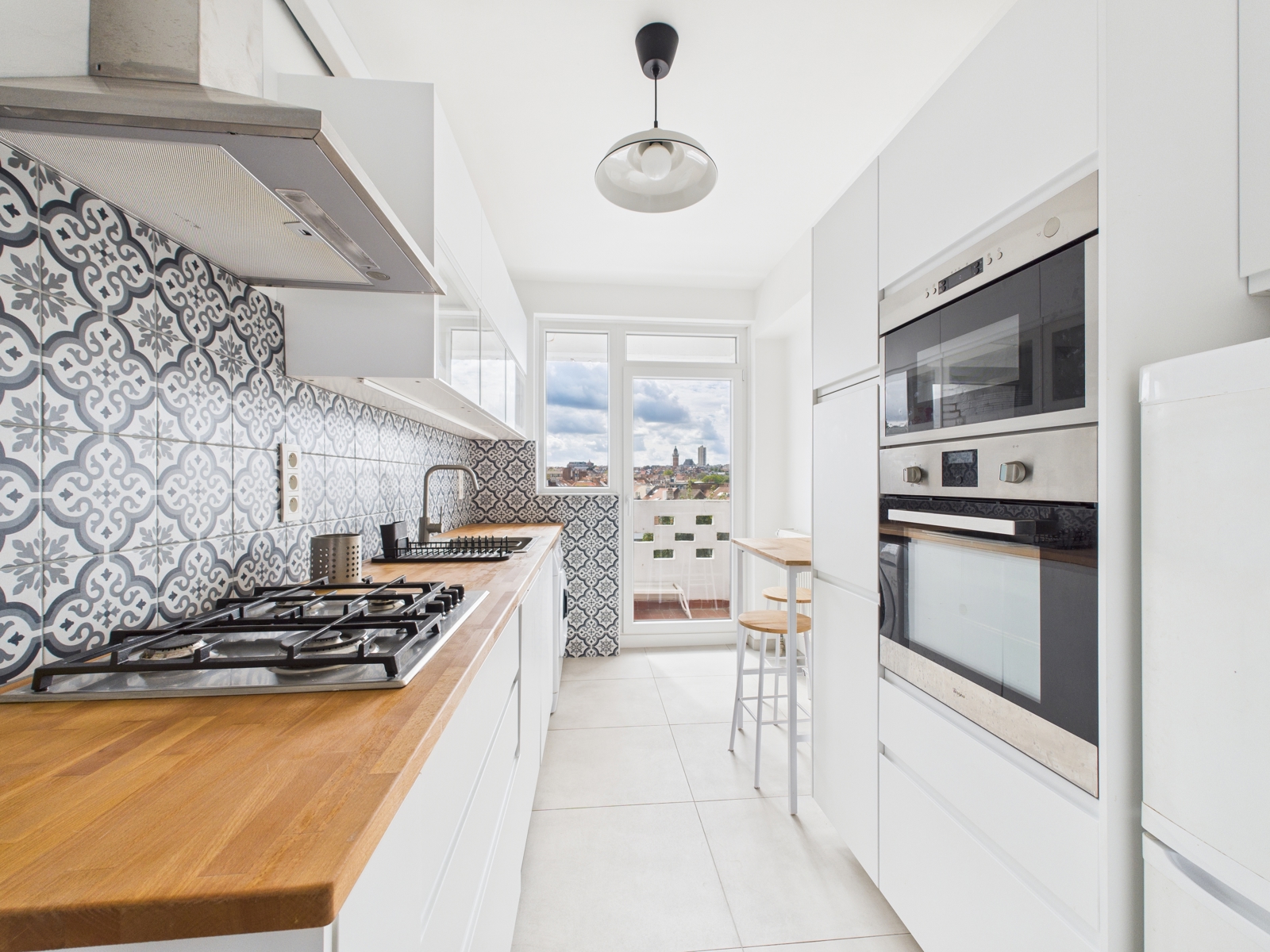 De woning bestaat uit een inkomhal, een volledig uitgeruste keuken met balkon, een woonkamer met terras, een doucheruimte en 1 slaapkamer.