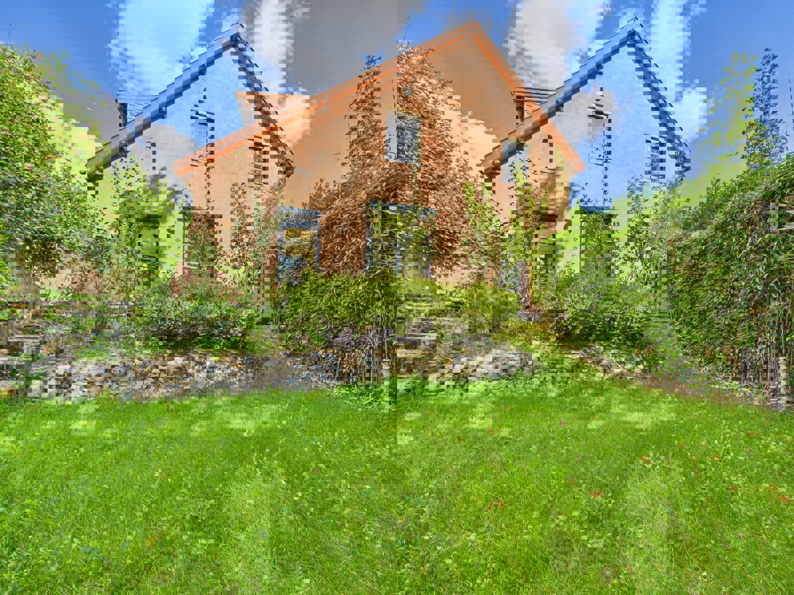 De woning bestaat uit een ontvangstruimte met toegang tot het terras en een toilet bij de ingang, een ruime woonkamer met toegang tot de tuin, een halfopen keuken en een kantoor of slaapkamer. Boven bevinden zich een nachthal, drie slaapkamers, waarvan één met een en-suite badkamer met douche en toilet, een tweede badkamer met douche en toilet, en een terras. In de kelder bevinden zich de kelders en de technische ruimte/wasruimte. Er is een overdekte parkeerplaats binnen; de toegang is via een recht van overpad met de aangrenzende woning in de aanbouw. ​​Recente condensatieketel, zonnepanelen, dubbele beglazing, PEB daterend van vóór de technische renovatie, momenteel in G, 407 kWh/m²/jaar, 81 kgCO²/m²/jaar. Een gewilde buurt, bezoek snel.